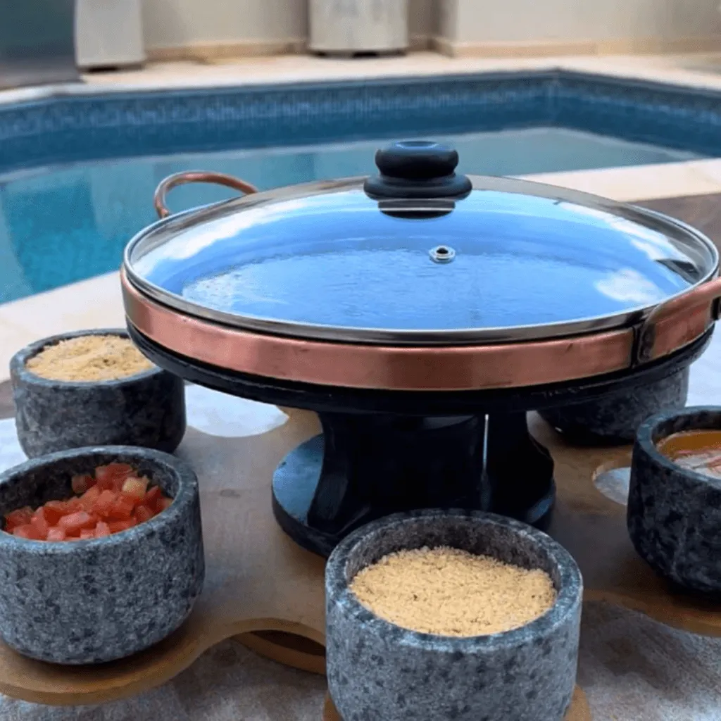Um conjunto completo para quem busca praticidade, tradição e experiência gastronômica em casa. Produzido em pedra-sabão, esse jogo é ideal para preparar e servir alimentos mantendo o calor por muito mais tempo.