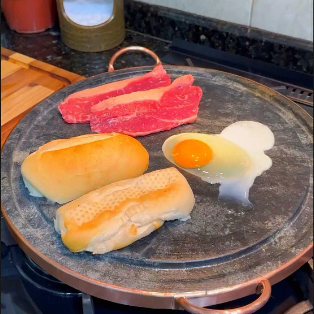 - Material: Pedra sabão e cobre (alças).